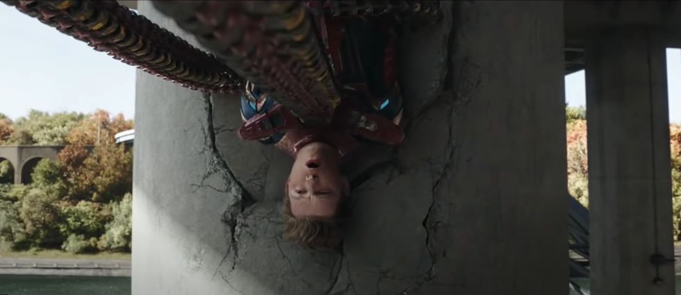 Of course, to MCU fans, Tom Holland is Peter Parker, but this implies that Doc Ock is used to a different Peter, perhaps one that looks like Tobey Maguire. This is not the only evidence of reprisals from Maguire and Andrew Garfield. In a shot of what seems to be a climactic battle, Spider-Man is leaping at Sandman, Lizard, and Electro by himself. While this on its own isn’t damning evidence, Electro and Lizard are not leaping at Spidey. Instead, the two villains are leaping to empty space. Marvel has been know to edit characters out of trailers before, such as Pepper Potts in the trailer for Avengers: Endgame. It is likely that two characters are meant to be filling in the empty space to balance the scales of the fight. I’ve drawn in line of sight arrows to show the direction of the villains.